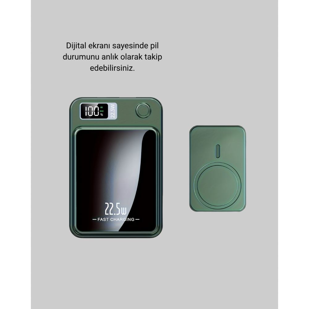 MagSafe Powerbank Kablosuz Şarjlı ve 22.5W Hızlı Şarj Destekli
