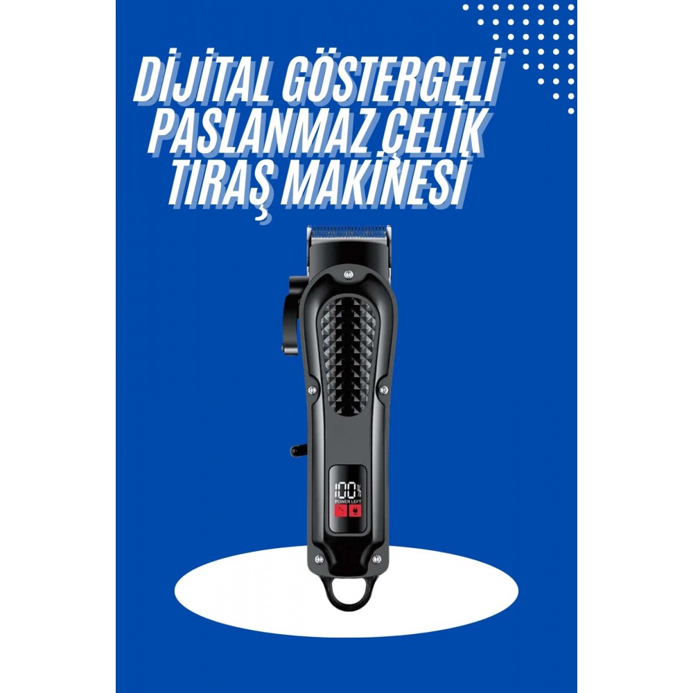 Dijital Profesyonel Kablosuz Saç Sakal Tıraş Makinası Sessiz Paslanmaz Çelik