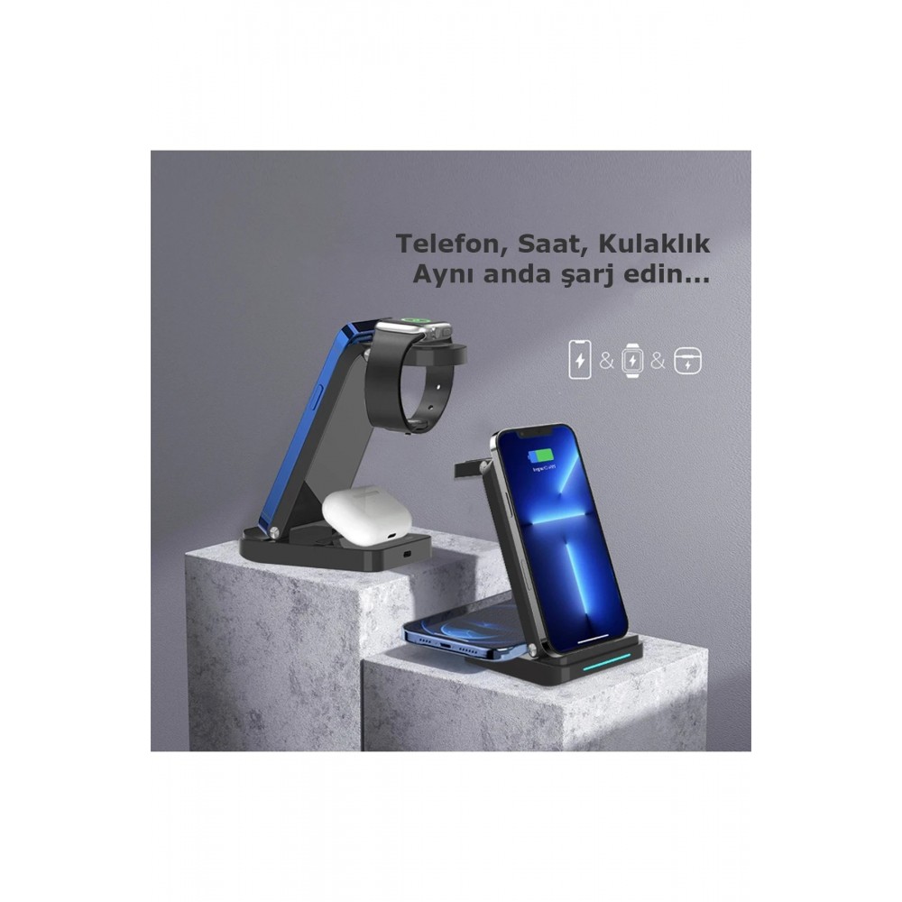YM-UD22 Kablosuz Şarj Masaüstü Set ✅ 5 in 1 MagSafe Kablosuz Şarj Cihazı Aynı anda dört farklı ciha..