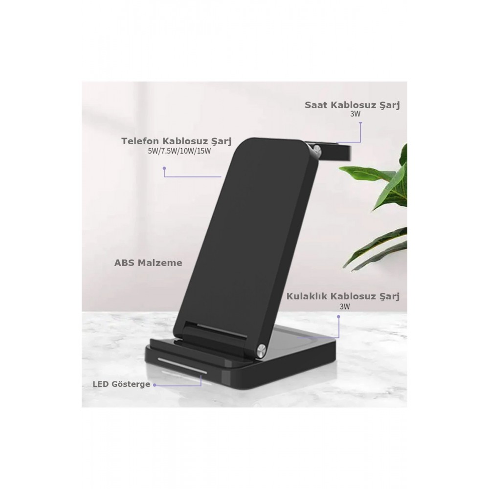 S90 4in1 Kablosuz Şarj Masaüstü Set - Siyah-(5796)