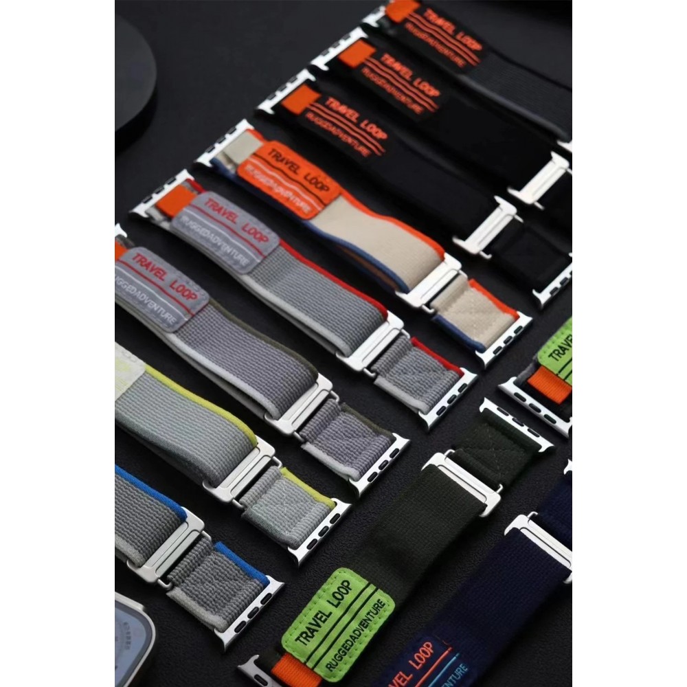 Apple Watch 42mm Alice Kumaş Kordon - Siyah-Gri-(5796)
