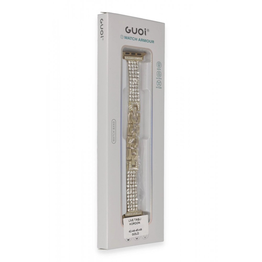 Apple Watch 38mm Live Taşlı Kordon - Gold-(5796)