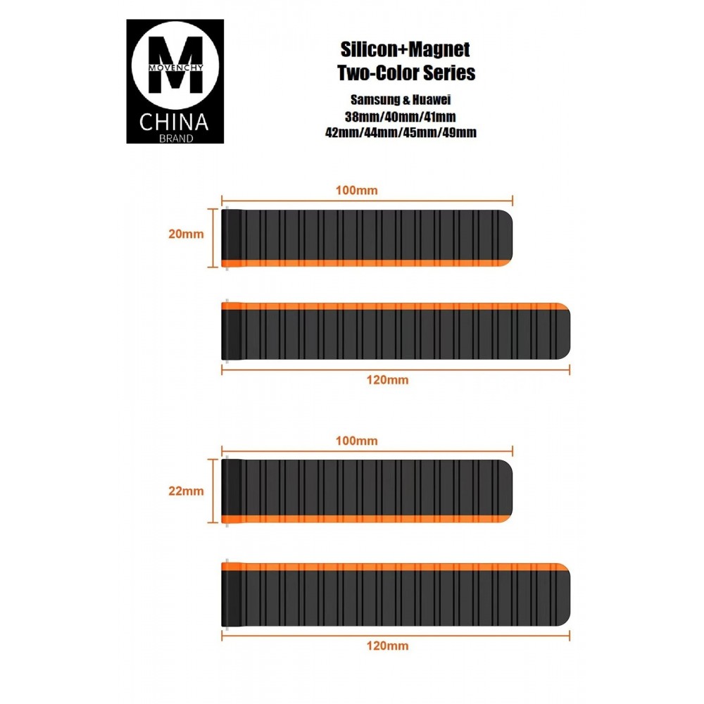 Apple Watch 42mm MO-WB1 Çift Renk Mıknatıslı Silikon Kordon - Siyah-Turuncu-(5796)