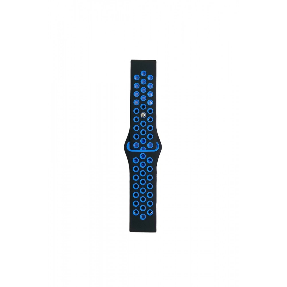 Watch 22mm Spor Delikli Kordon - Siyah-Mavi-(5796)