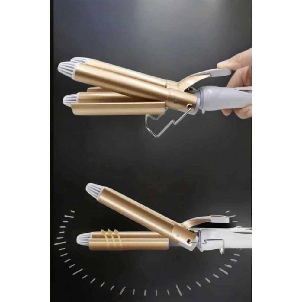 Üçlü saç maşası, profesyonel görünümlü, doğal ve dayanıklı bukleler oluşturmak için mükemmel bir ara..