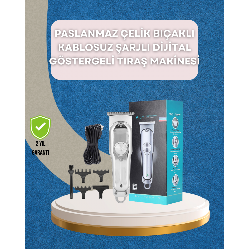 Dijital Profesyonel Kablosuz Saç Sakal Tıraş Makinası Sessiz Paslanmaz Çelik