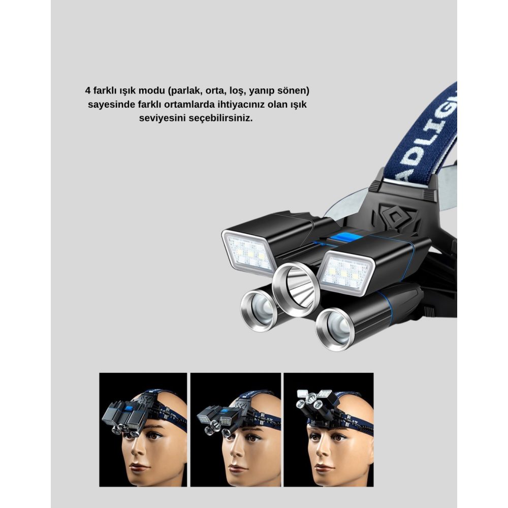 Yüksek performanslı aydınlatma arayanlar için özel olarak tasarlanmış bu COB LED kafa lambası, beş f..