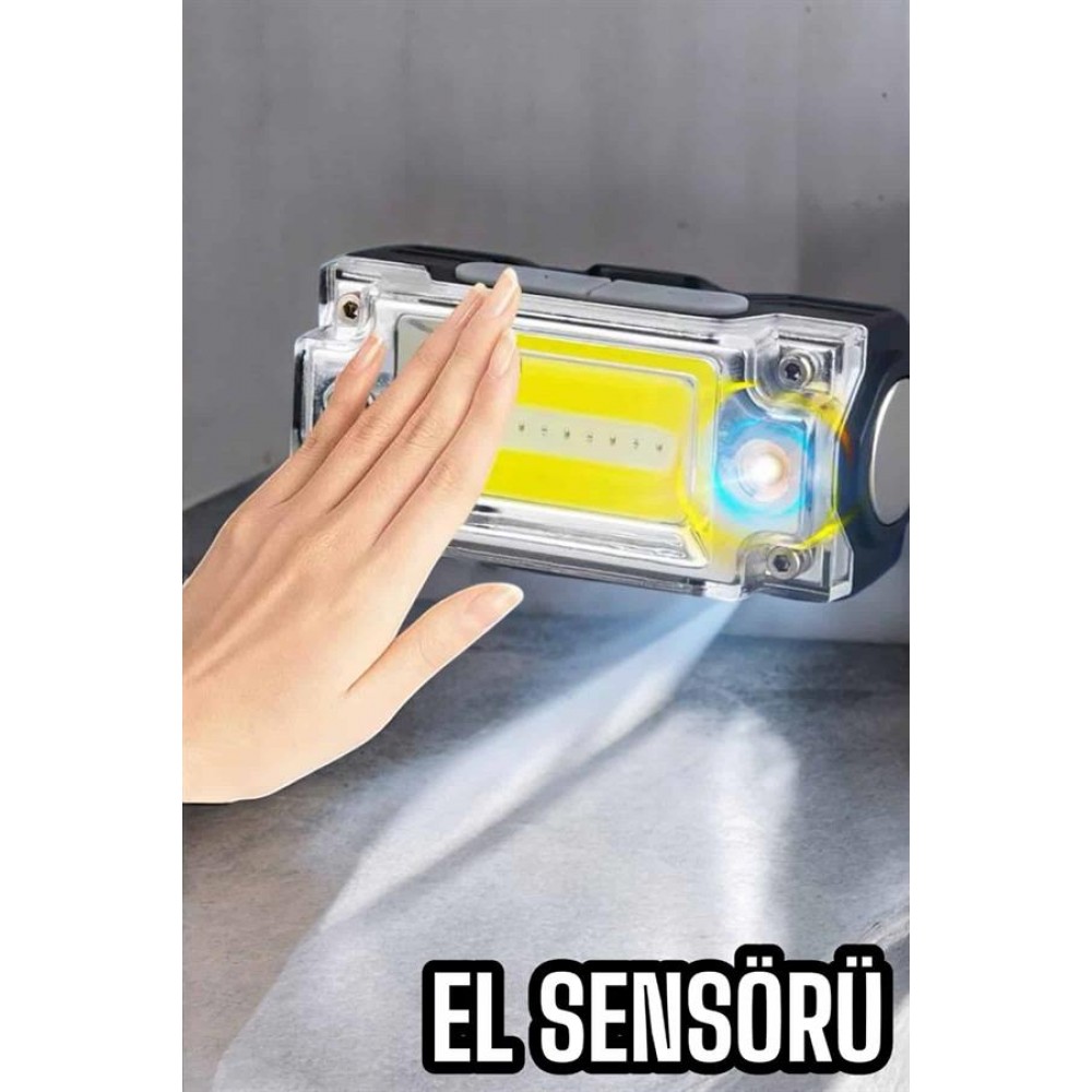 Beyaz Led Işık Sensörlü Kafa Lambası Lityum Batarya Led El Fenerli Şarjlı