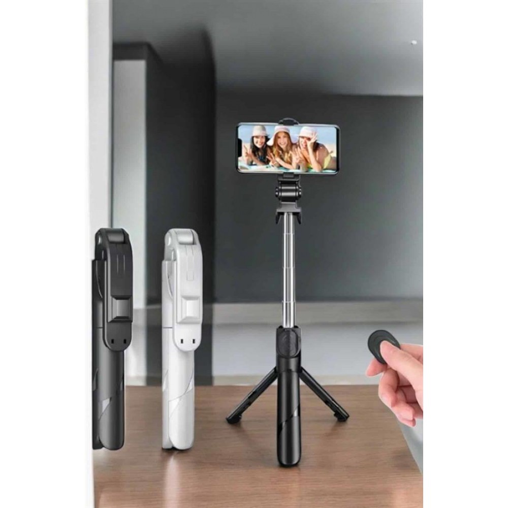 Selfie Çubuğu Tripod Kumandalı Telefon Tutucu Siyah