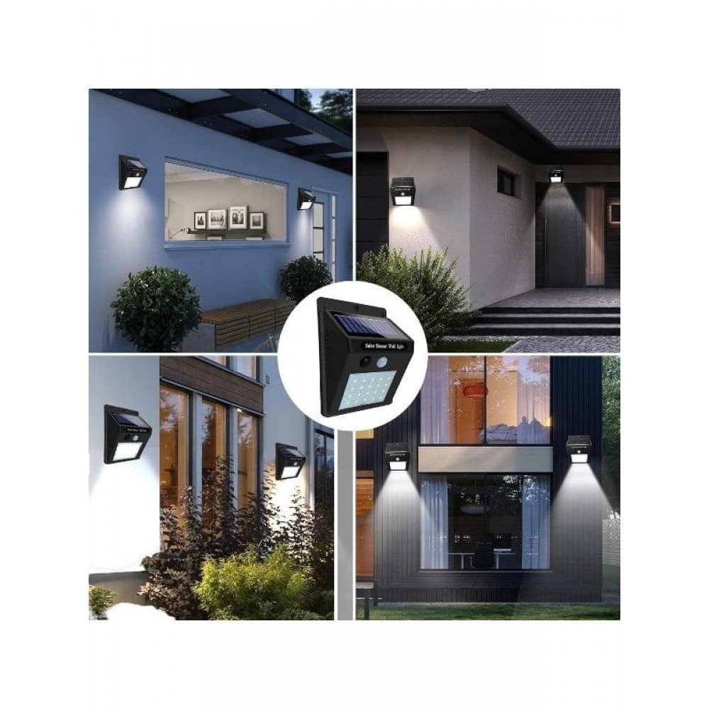 Solar Sensörlü Duvar Lambası Bahçe Lamba 20 Led Işık