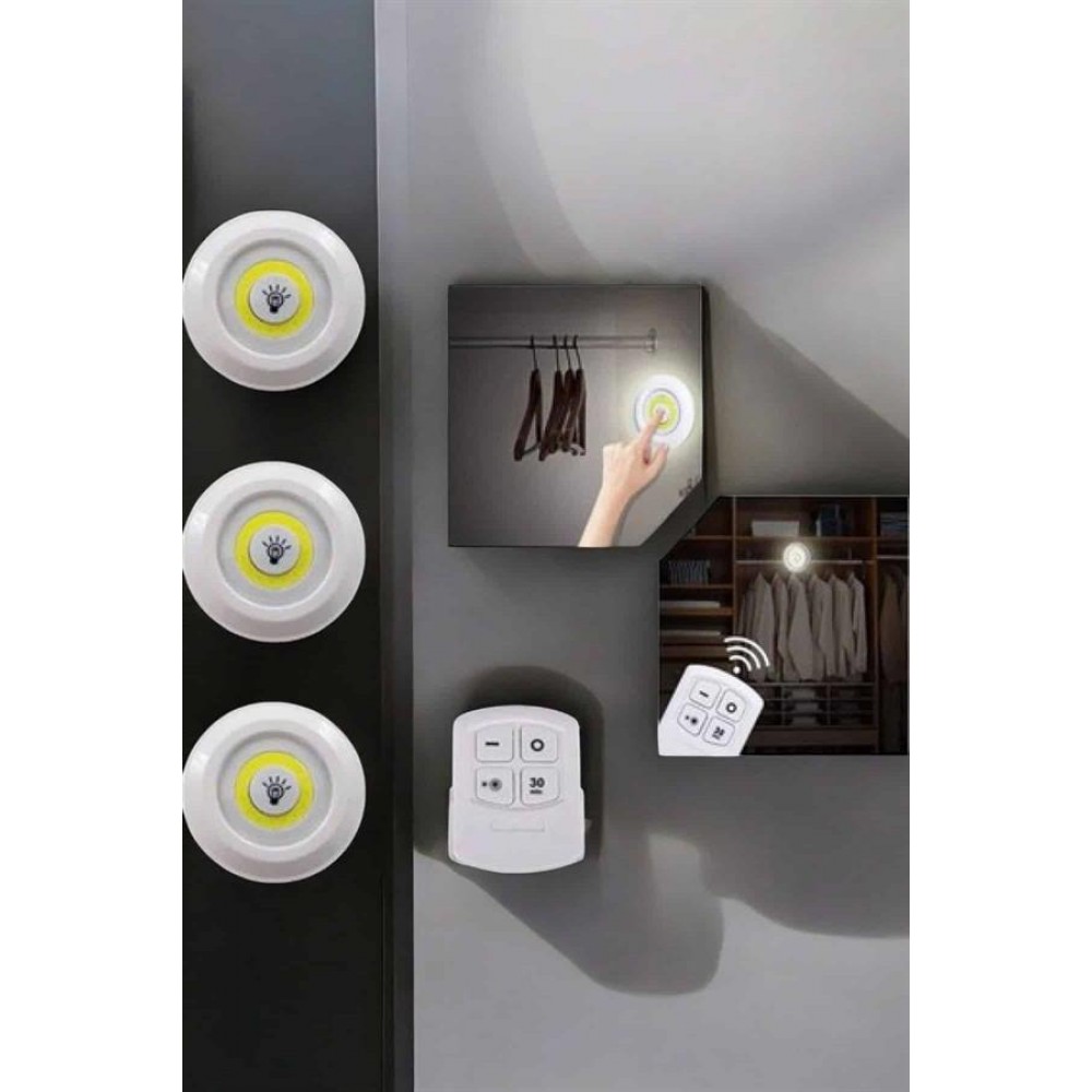 Led Lamba 3'lü Uzaktan Kumandalı Yapışkanlı