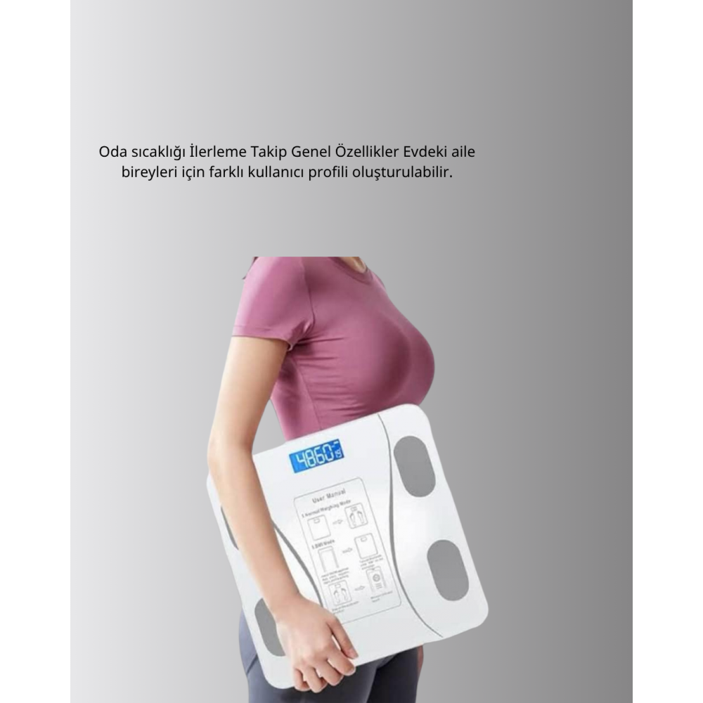 Sağlığınızı takip etmenin en akıllı yolu! Akıllı Bluetooth Tartı, yalnızca ağırlığınızı değil, vücudunuzla ilgili birçok detayı analiz ederek size kapsamlı bir sağlık raporu sunar. Gelişmiş sensör teknolojisi sayesinde 8 farklı ölçüm verisini (ağırlık, vücut yağı, visseral yağ, kas oranı, kemik yoğunluğu, BMR, yaş ve BMI) anında hesaplar.Bluetooth bağlantı özelliği ile akıllı telefonunuza kolayca bağlanabilir. Android ve iOS uyumlu OKOK International uygulaması, ölçüm sonuçlarınızı anlık olarak görüntülemenizi ve geçmiş verilerinizi takip etmenizi sağlar. Böylece kilo değişimlerinizi, yağ oranınızı veya kas gelişiminizi düzenli olarak gözlemleyebilir, sağlıklı bir yaşam için kişisel hedefler belirleyebilirsiniz.Tartı, otomatik kullanıcı tanıma sistemi sayesinde farklı aile bireylerini algılayarak kişisel profilleri otomatik olarak oluşturur. Bu özellik, ailedeki herkesin kendi ölçümlerini ayrı ayrı takip etmesine olanak tanır.3 kg – 180 kg kapasiteye sahip bu dijital baskül, kg/lb/st birimleriyle ölçüm yapabilir. Üzerine çıkıldığında otomatik olarak çalışır ve kullanılmadığında kendiliğinden kapanır. Ayrıca oda sıcaklığını da gösterebilir.Aşırı yük uyarısı güvenli kullanım sağlarken, şık ve modern tasarımı her banyoya veya spor alanına zarif bir dokunuş katar. 2 adet AAA pil ile çalışır ve enerji tasarruflu sistemiyle uzun ömürlü kullanım sunar.Kilo kontrolünü teknolojiyle buluşturmak isteyen herkes için ideal!Akıllı Bluetooth Tartı, sağlığınızı yakından takip etmenin en kolay, en akıllı ve en modern yolunu sunar.
