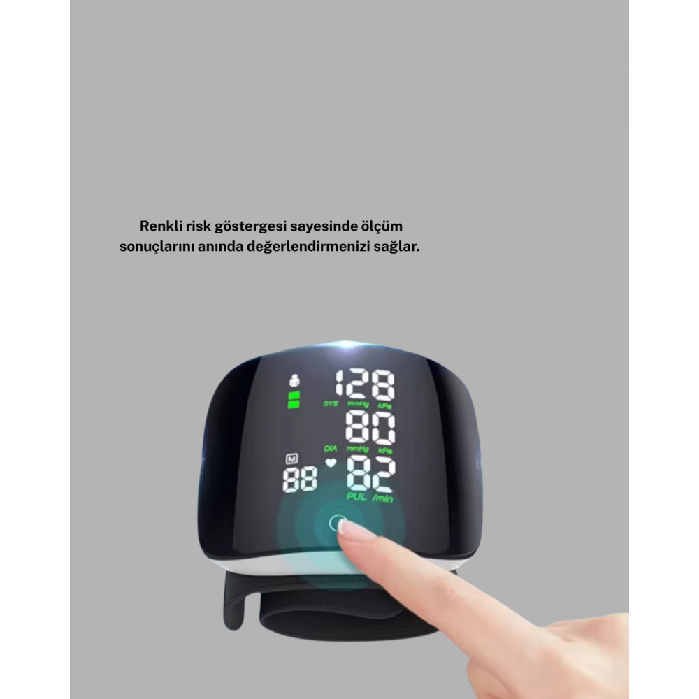 Taşınabilir Dijital Tansiyon Aleti – Bilekten Ölçüm Aritmi Uyarısı ve Risk Göstergesi