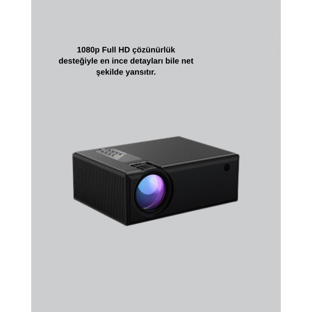 1080p Full HD Taşınabilir Projeksiyon Cihazı LED Işıklı Uzaktan Kumandalı