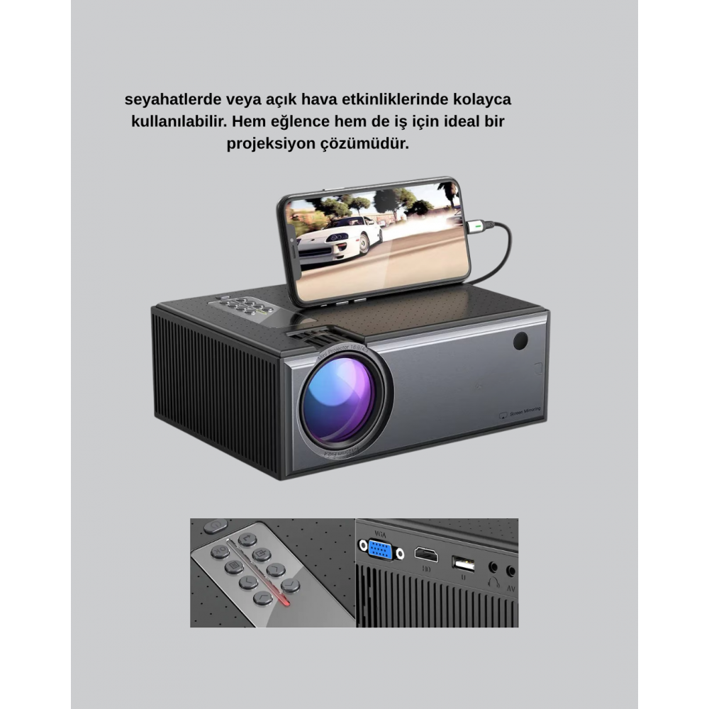 Bu mini projektör, farklı cihazlarla kolay bağlantı kurabilmeniz için çoklu giriş seçenekleri ile do..