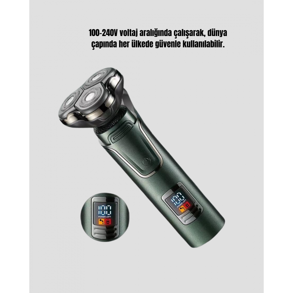 Kablosuz Profesyonel Erkek Bakım Seti – 3 Başlıklı 3D Akıllı Kesim Taşınabilir