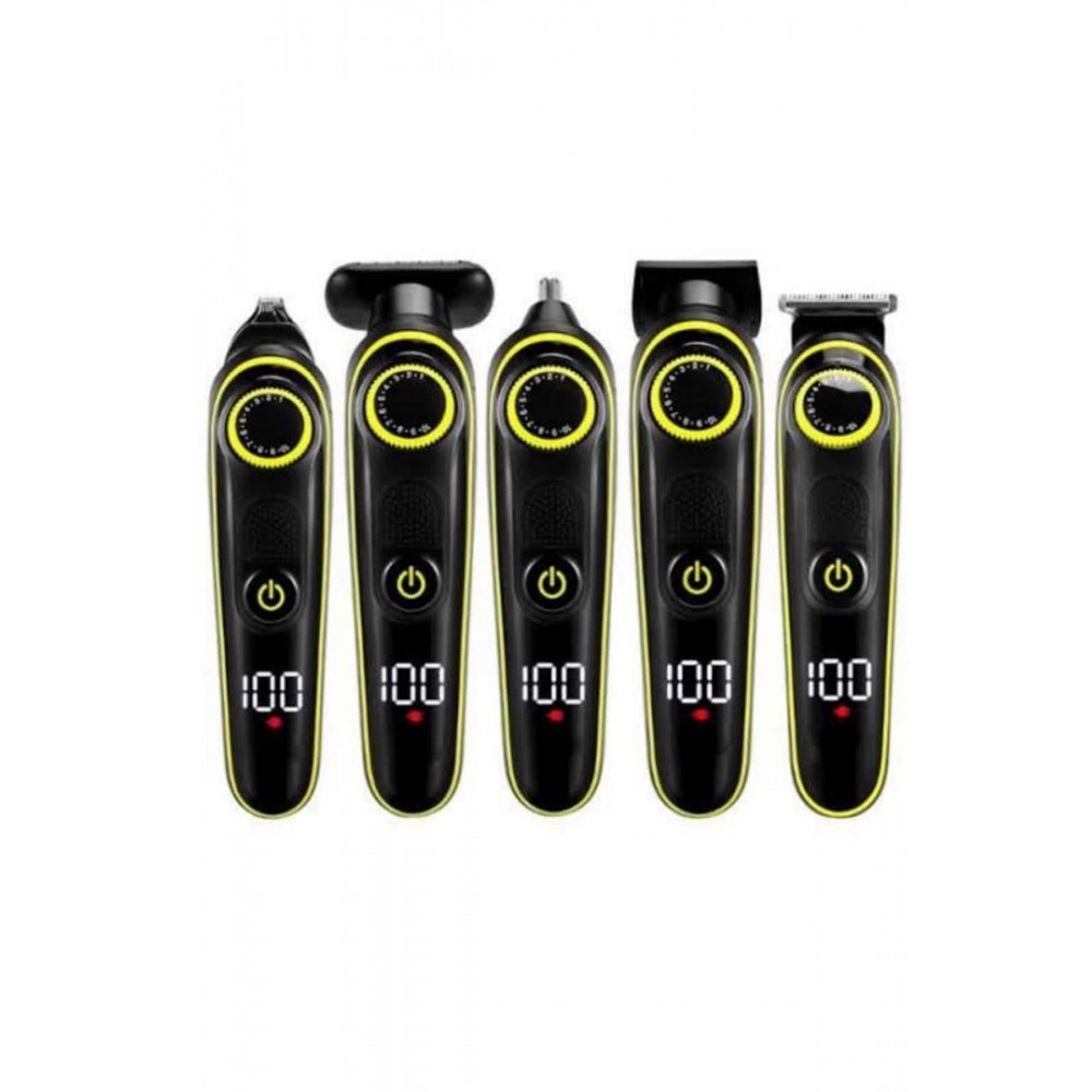 5 Başlıklı Şarjlı Tıraş Makinesi Led Ekran Saç Sakal Ense Tıraşına Uygun Bakım Seti