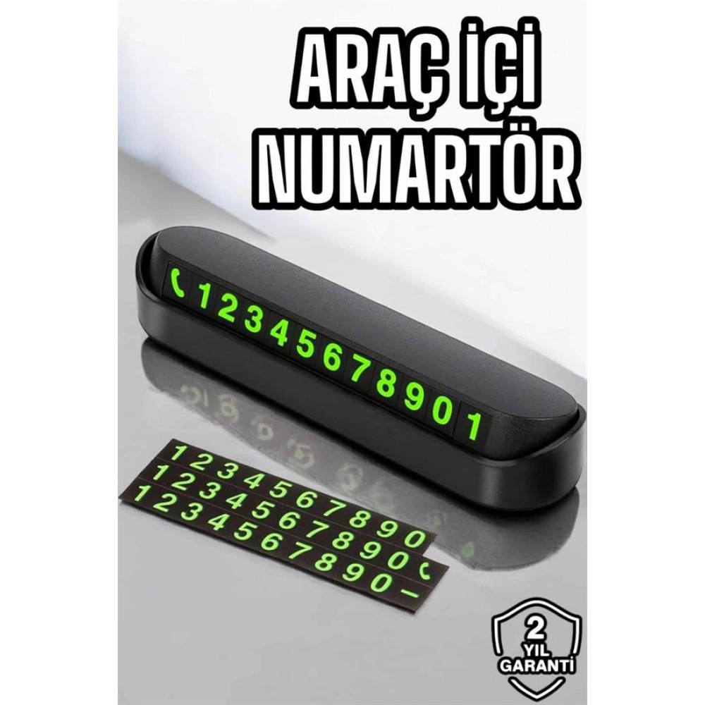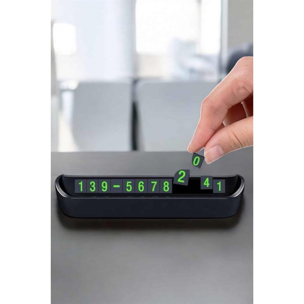 Araç içi park numaratörü, fosforlu yapısıyla gece bile kolayca görülebilen telefon numarası görünürl..