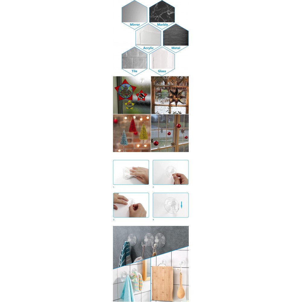 ÇIKARILABİLİR VE YENİDEN KULLANILABİLİR  Emme kancaları, güçlü taşıma kapasitesi ve yapışma özelliğine sahip, su geçirmez ve uzun hizmet ömrüne sahip yüksek kaliteli silikon/kauçuk malzemeden yapılmıştır. vantuz kancalarımızın çıkarılması kolaydır, iz bırakmaz ve yeniden kullanılabilir.