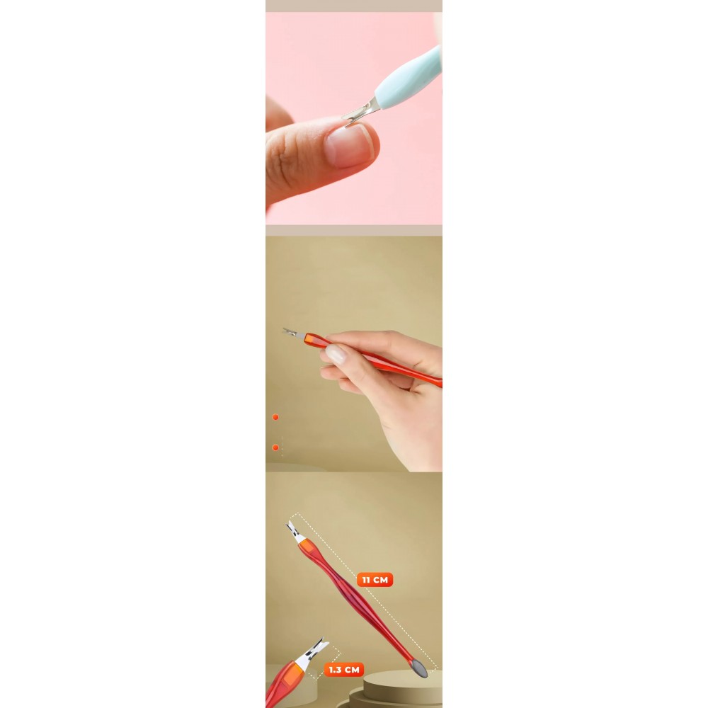 V şeklindeki bıçak, fazla kütikülleri ve şeytan tırnaklarını minimum çabayla güvenli ve hızlı bir şekilde düzeltir; Kalem benzeri uç, tırnak etlerini itmek için uygulanır, tasarım, tırnak etlerini kolayca şekillendirmeye yardımcı olur; Kulplu, tutmanız için rahatlık ve rahatlık sağlayabilir, tırnak temizleme işini kolaylaştırır, hem erkek hem de kadınların kullanımına uygundur
