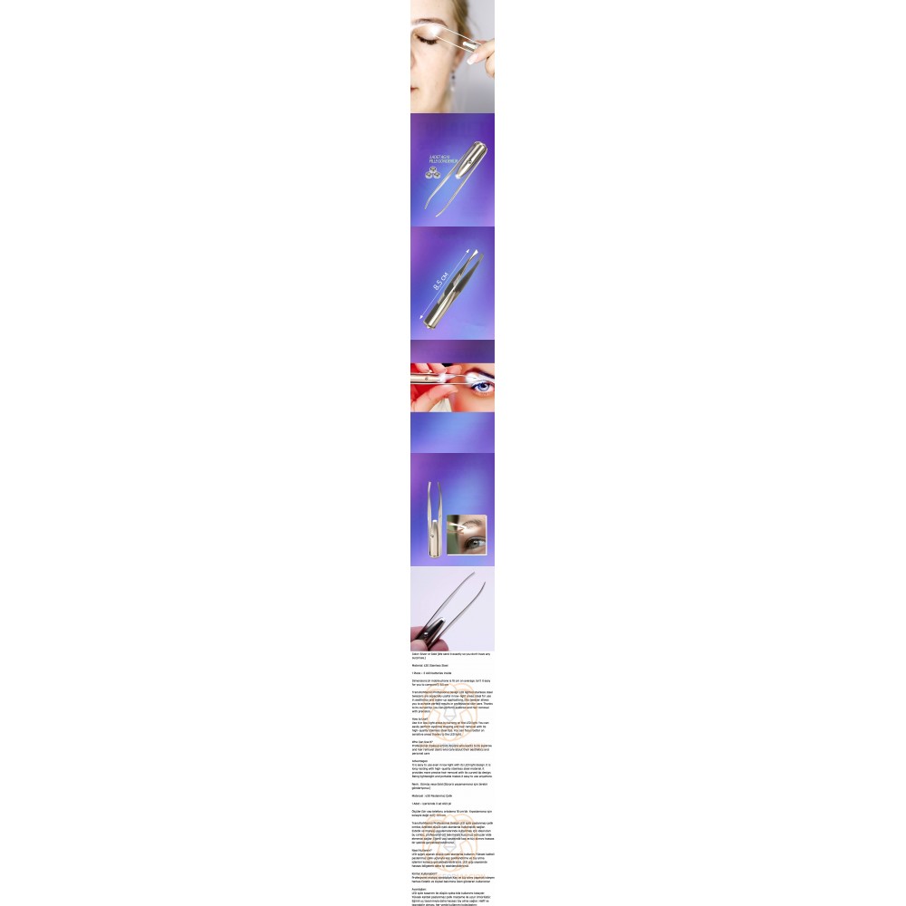 LED ışıklı tasarımı ile düşük ışıkta bile kullanımı kolaydır. Yüksek kaliteli paslanmaz çelik malzeme ile uzun ömürlüdür. Eğimli uç tasarımıyla daha hassas tüy alma sağlar. Hafif ve taşınabilir olması, her yerde kullanımı kolaylaştırır.