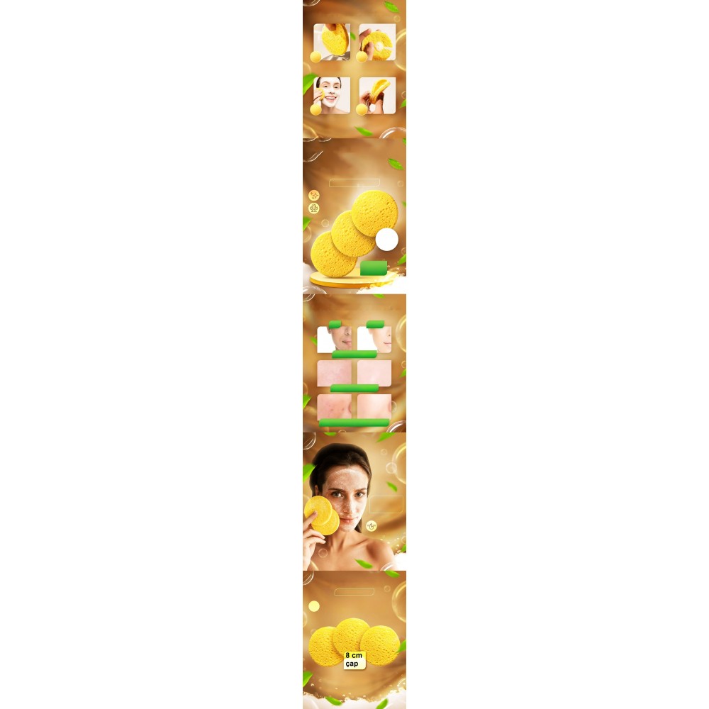 Selüloz Yüz Süngerleri, günlük yüz temizliği için üstün kaliteli süngerlerdir. Kiri, makyajı çıkarmak ve gözenekleri nazikçe temizlemek için makyaj temizleyici veya yüz temizleyici ile eşleştirildiğinde mükemmel çalışırlar.