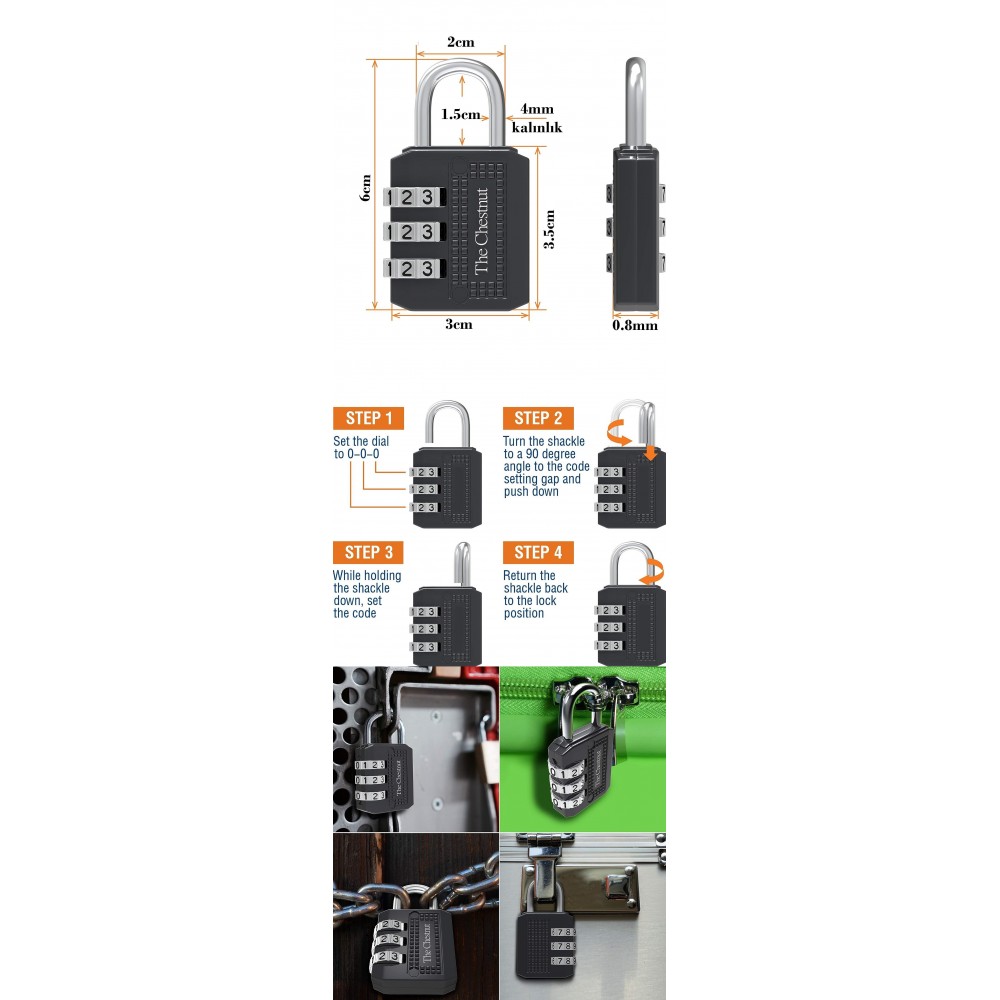 * Özellik: 3 haneli şifre kombinasyonu, anahtarsız kullanım
