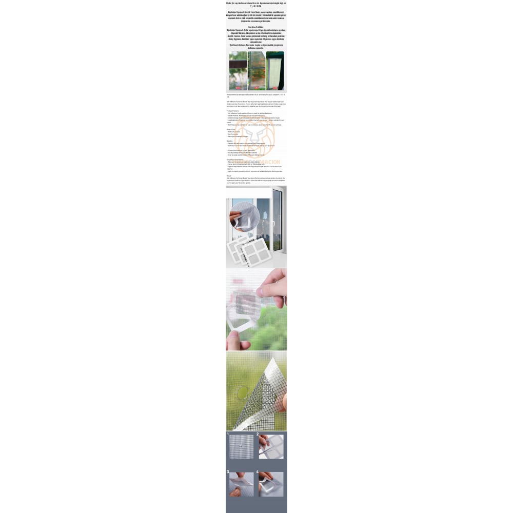 Kendinden Yapışkanlı Sineklik Tamir Bandı, pencere ve kapı sinekliklerinizi kolayca tamir edebileceğiniz pratik bir üründür. Yüksek kaliteli yapışkan yüzeyi sayesinde hızlı ve etkili bir şekilde sinekliklerinizi onararak evinizi sinek ve böceklerden korumanıza yardımcı olur.