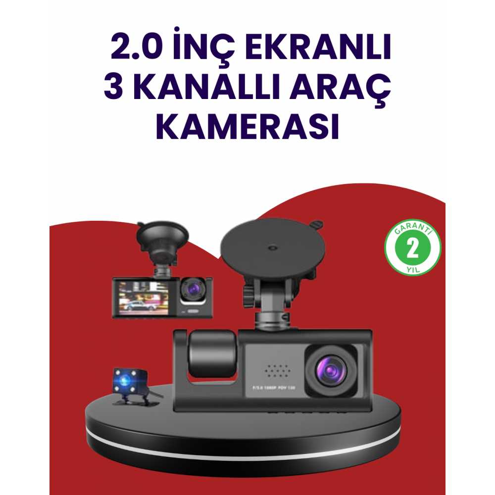 Üç Kameralı Araç Kamerası | Full HD 1080P Ön + HD İç/Arka