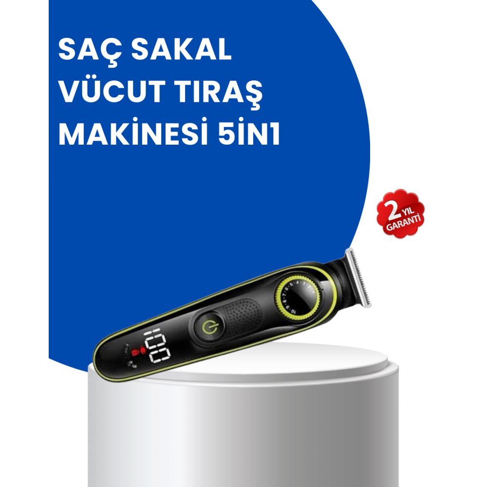 Uzun Pil Ömürlü LED Göstergeli Erkek Bakım Seti 5-in-1 Saç Sakal Tıraş Makinesi