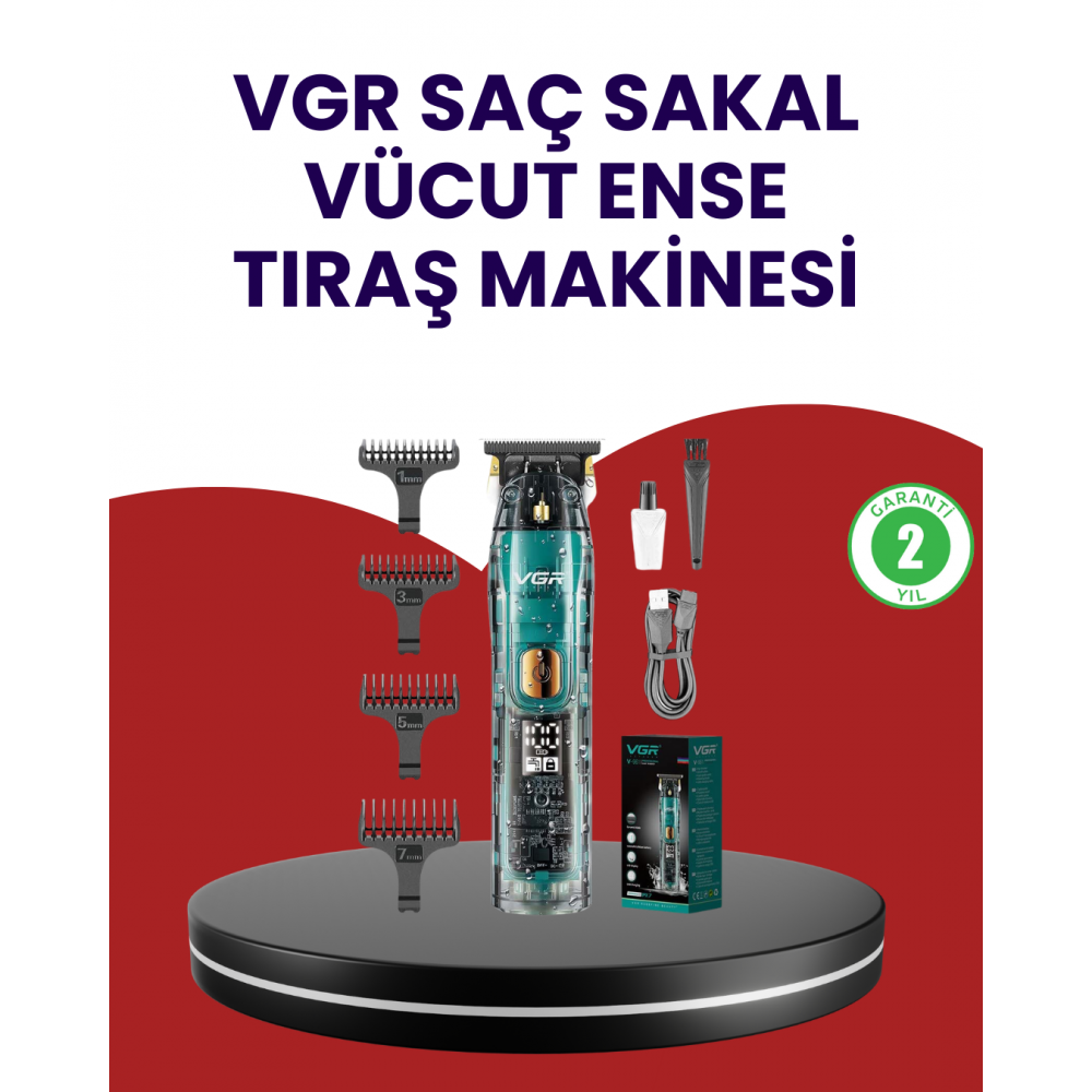 VGR V-695 Saç ve Sakal Kesme Makinesi LED Ekranlı 5 Uzunluk Ayarı