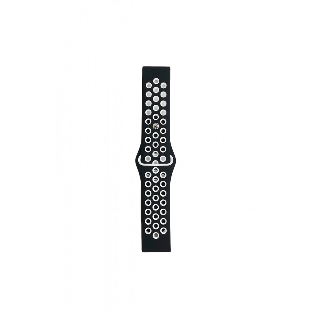 Watch 22mm Spor Delikli Kordon - Siyah-Beyaz-(5796)