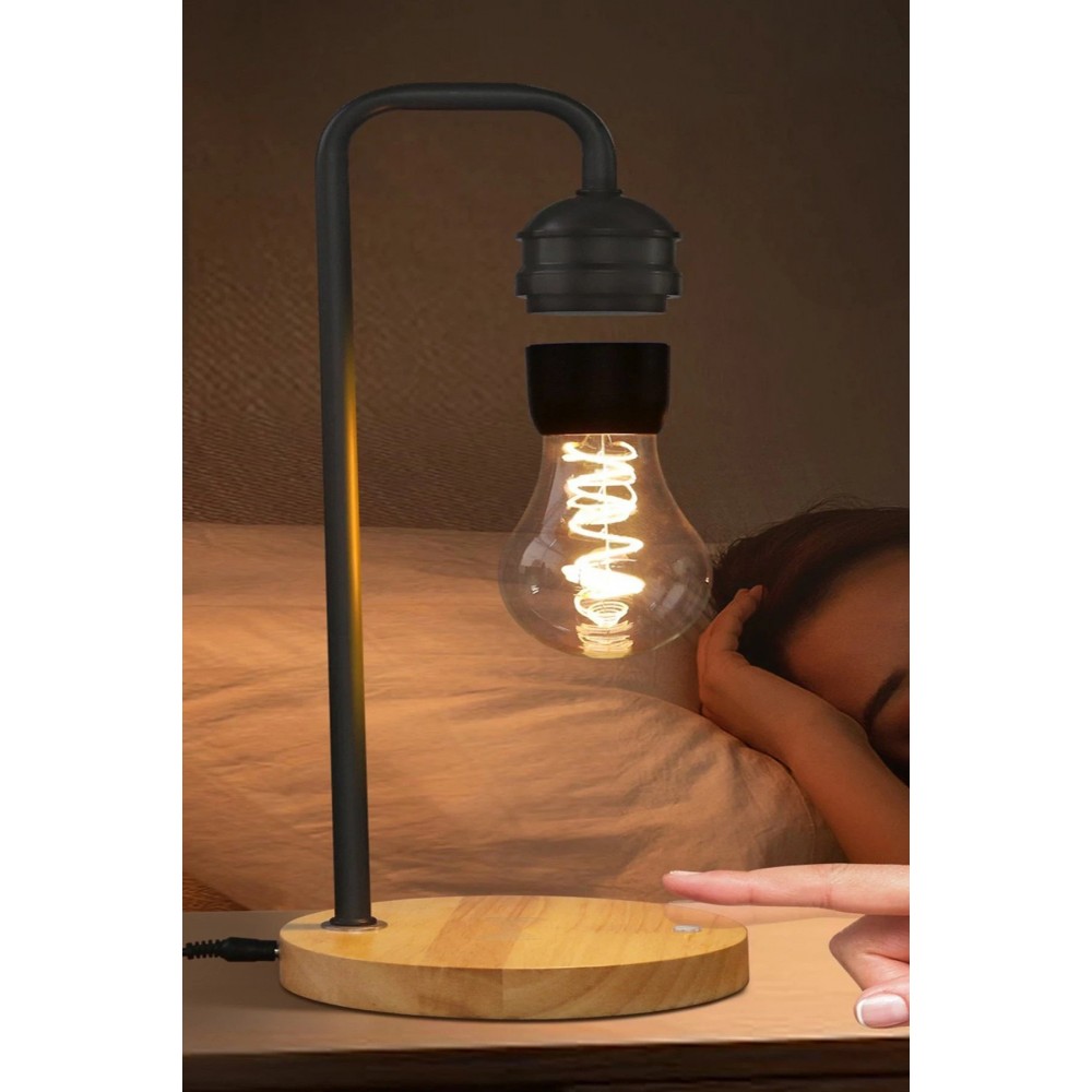 XF01 Ampul Görünümlü Kablosuz Şarj Özellikli Gece Lambası - Siyah-(5796)