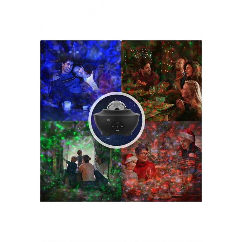 Projektör Yıldız Gece Lambası Disko Topu Bluetooth Bağlantılı Taşınabilir Şarjlı