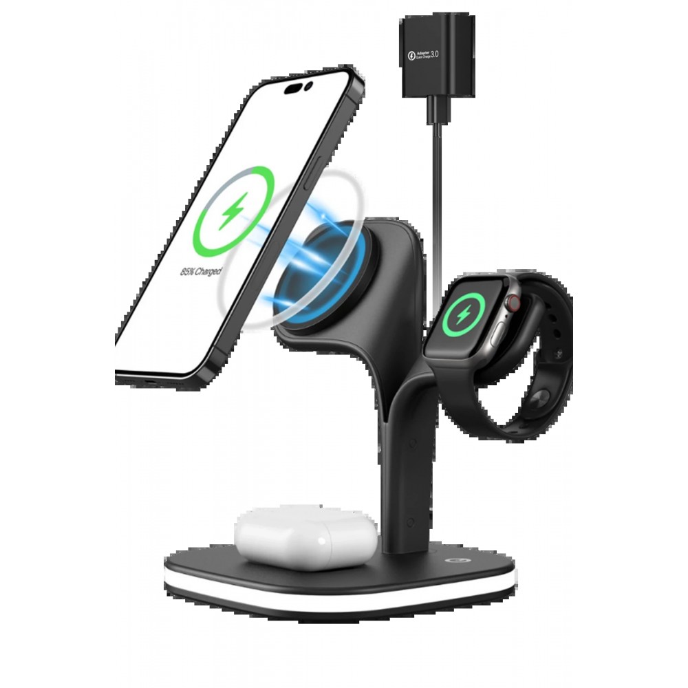 Phone, AirPods, iWatch ve ek Qi uyumlu cihazları aynı anda şarj ederek verimliliğinizi artırır.