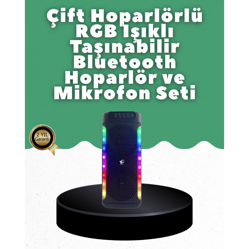 RGB Işıklı Çift Hoparlörlü Taşınabilir Bluetooth Speaker ve Mikrofon